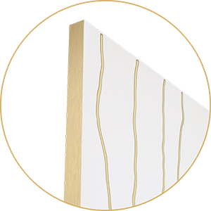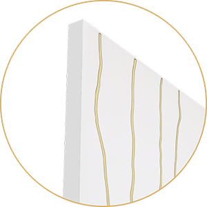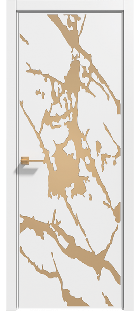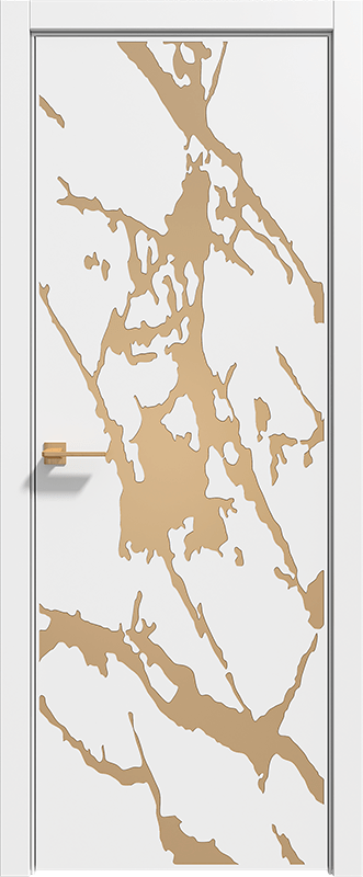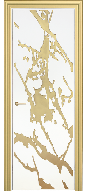 Двери серии Gold — оригинальный элемент интерьера, который будет украшать комнату. Абстракция и природные мотивы мрамора подчеркнуты патиной. Двери возможно изготовить с двумя видами кромки: под цвет полотна или можно обрамить с двух сторон латунной кромкой — такой вариант идеален если фрезеровку покрывает золотая патина. Благодаря этим приемам полотна могут заменить декор помещения.