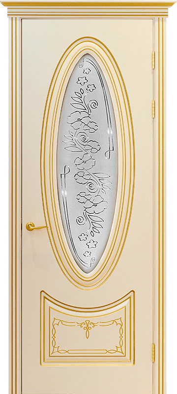 Подлинный классический антураж выражен в образе двери Версаль. Выразительные линии на витражном стекле матового цвета дополняют рисунок двери, придавая ей объем. Округлая форма стекла создает ощущение легкости и открытости.
